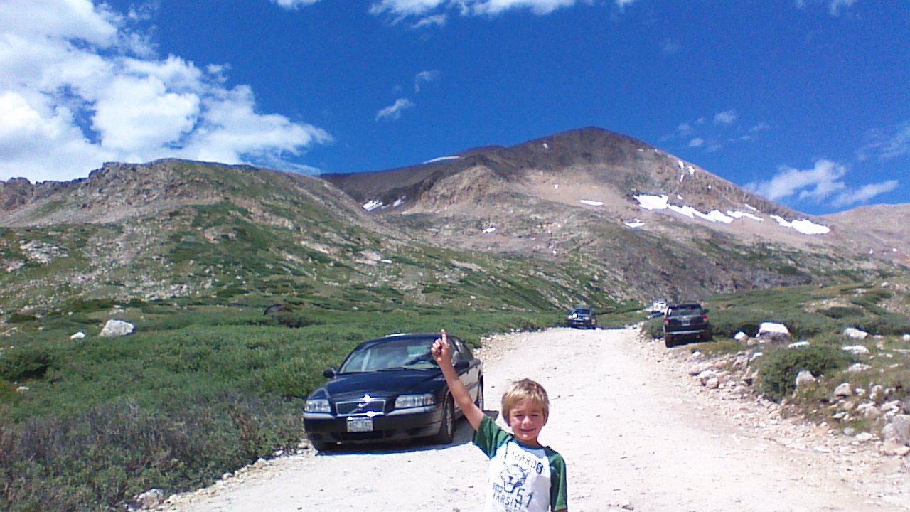 In addition, the whole family gave a shot at climbing Mt. Democrat, a nearby 14er to Frisco that has a very high starting point.  Even Chloe started out in the backpack for this one. In the end, only the boys made the peak on this one, and Levi was able to claim his first 14er at age 5!  The mountain straight way in the background is the one that he tirelessly zipped up.