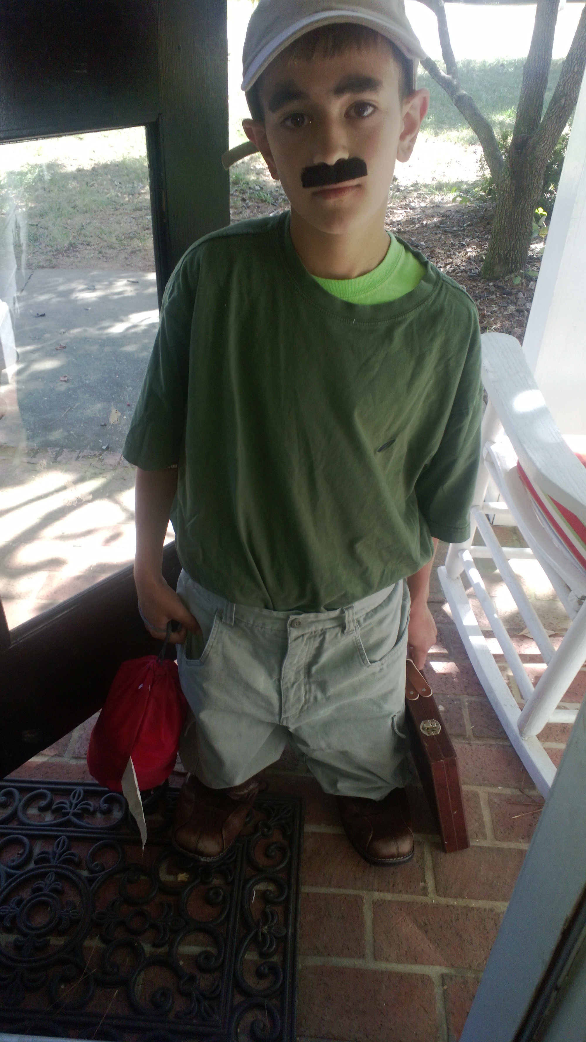 As most children like to do, we had our share of dress up opportunities.  My favorite was the visit we had from this salesmen. A 2’6″ Grouch Marx can try to sell you lots of different things.  Jonathan the Salesman